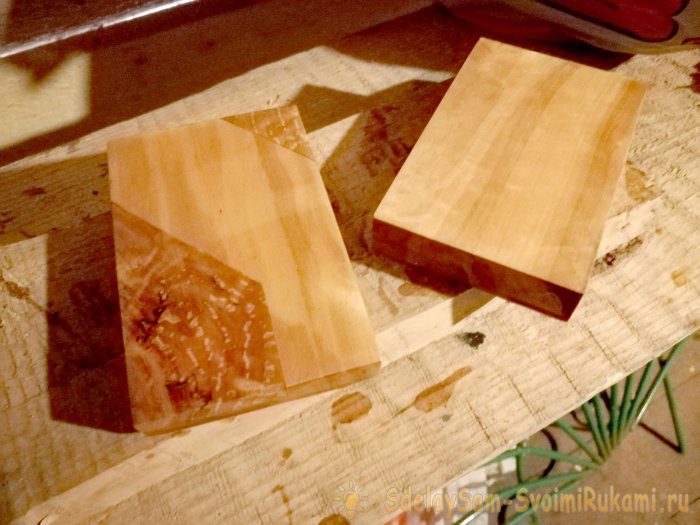 3) Следующим этапом изготовим вставки и приклеим их. Для этого отпилим от капа пару плоских дощечек и вырежем из них вставки и отшлифуем.