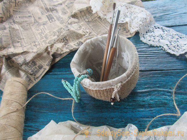 Делается корзинка из джута так:
