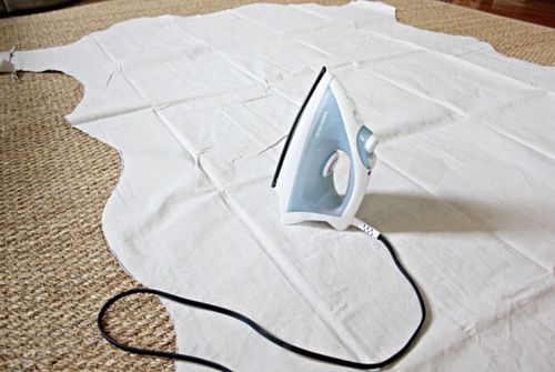 Теперь нужно разгладить ткань. Это сделает процесс нанесения краски и полосатого рисунка легче.