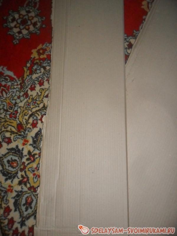 Берем картон, отрезаем куски нужной высоты. Я измерила высоту уровня колена ребенка, но можно сделать пониже, некоторым детям нравится сидеть на низких стульчиках. Длина кусков не принципиальна.