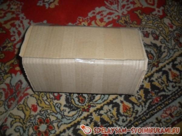 Начинаем скручивать картон, скрепляя клейкой лентой по мере необходимости, чтобы он потом не развернулся.