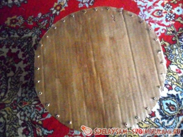 Делаю отверстия шилом через равные (примерно) промежутки по всей окружности. Космической точности не старалась добиться, главным было, чтобы изделие не заваливалось в стороны.