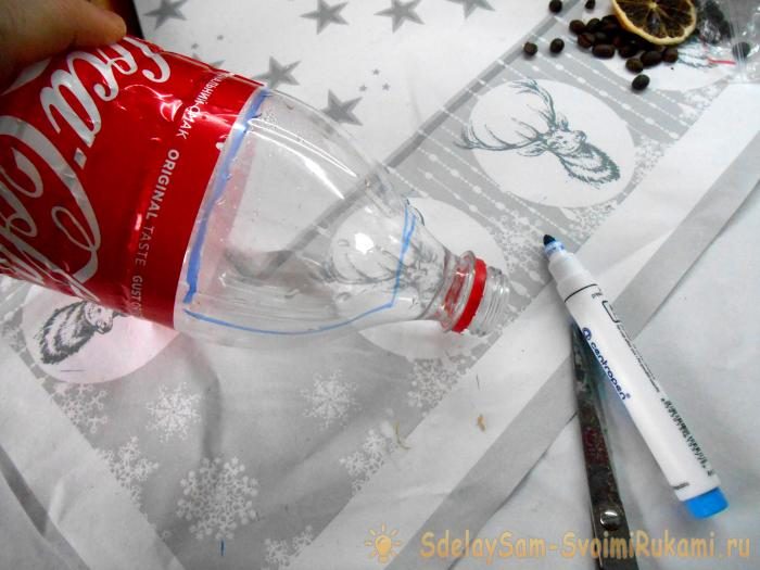 5. В верхней части пластиковой бутылки нарисуйте контур чашки нужного размера. Аккуратно вырежьте заготовку.