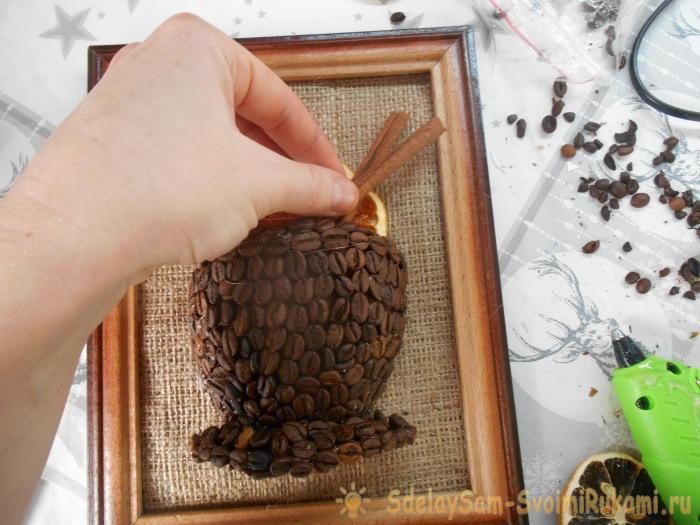 17. Выложите из кофейных зерен ручку чашки и аккуратно приклейте.