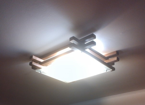 Это очень простой в изготовлении потолочный светильник, которой без особого труда может сделать каждый из вас своими руками. Его не отличить от покупного, а затраты на изготовление минимальны и позволят вам сэкономить солидную сумму, учитывая сколько стоят сейчас потолочные светильники.