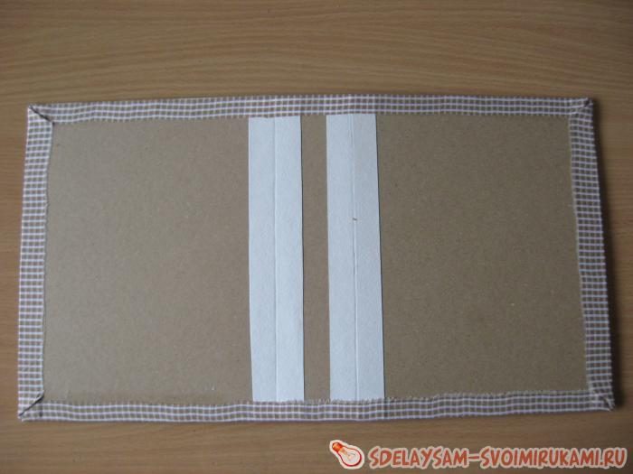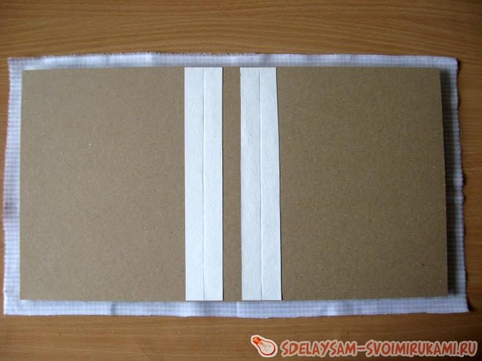 Гладим ткань, а теперь ею будем оборачивать переплетную основу.
