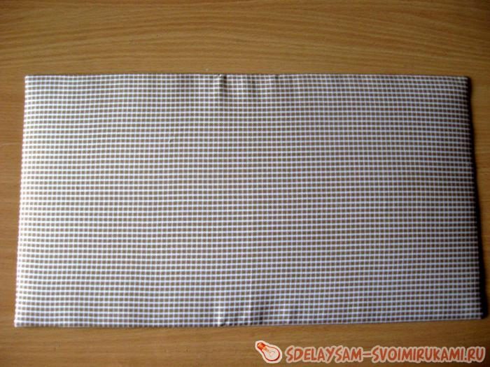Отрезаем ткань и две полоски тканевой ленты, ткань обязательно режем с запасом, чтобы можно было подвернуть.
