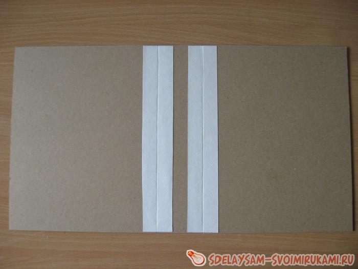 Начинаем мы с изготовления твердой основы нашей коробки. Нам нужно две заготовки 20*25 см и одну 6*25 см. Их выкладываем плотно друг к другу.
