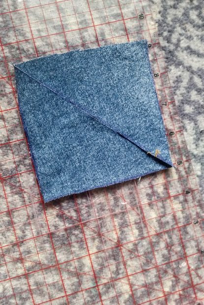 Вырежьте квадрат 11 на 11 см из джинсовой ткани.