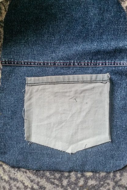 Пришейте карман по краям двумя рядами швов контрастной нитью.