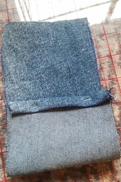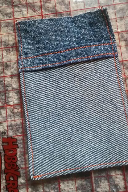 Вырежьте прямоугольник 24,5 на 9,5 см из джинсовой ткани.