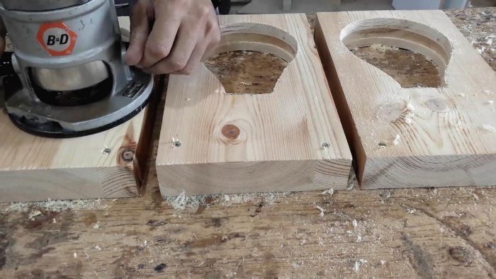 Теперь занимаюсь крепление светильника. Для этого снимаю фрезером фаску на доске 150х20 мм.