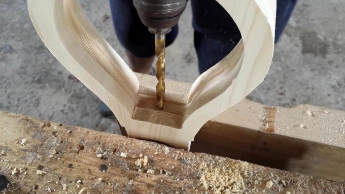В результате у меня получилось коробка. С внешней стороны ее дна сверлю 3 отверстия на одинаковом расстоянии друг от друга, сделав отступ от краев по 4 см.