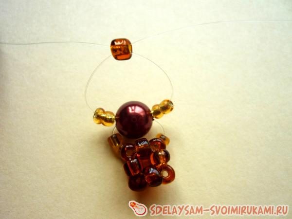 Только теперь мы продеваем концы лески через одну крайнюю верхнюю бисеринку шарика.