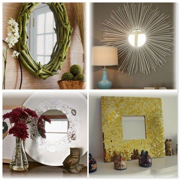 Можно самим сделать некоторые действительно оригинальные декоративные зеркала, которые можно повесить на стену или разместить на полке.