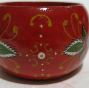 Второй этап. Теперь нужно нанести фоновый слой краски, поверх которого уже будет наноситься основная часть росписи. Выполнять эту часть работы лучше всего акриловыми красками, поскольку после высыхания они плохо растворимы в воде, а это значит, что они, не будут примешиваться при нанесении дальнейшего рисунка. Фон красится разведенной до очень жидкого состояния краской, причем делать это лучше на предварительно смоченную поверхность и крайне быстро. Если этого не сделать, останутся некрасивые разводы. Стоит отметить, что при этом фон получается полупрозрачным, но, если вам это не нравится, всегда можно добавить еще несколько таких слоев. Традиционно в Городецкой росписи фон пишется либо охрой, либо красной краской. В данном случае фоновый слой выполняется красным цветом.