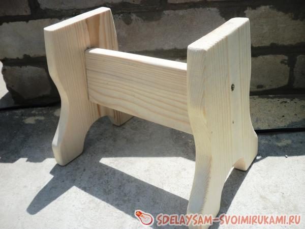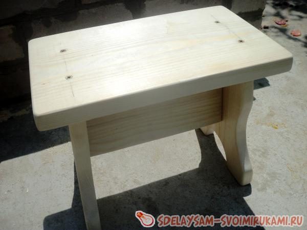 Стульчик собран! Еще раз проверяем его на ровной плоскости. В случае, если табурет немного шатается, то подтесываем ножки до полной устойчивости изделия.