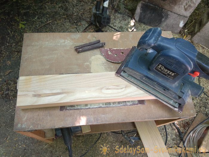 Для того чтобы отшлифовать древесину твердых пород, лучше всего использовать шлифмашину с грубой шкуркой. Некоторые места удобнее шлифовать вручную. Шлифовать необходимо до тех пор, пока у вас не получатся ровные и гладкие все стенки футляра.
