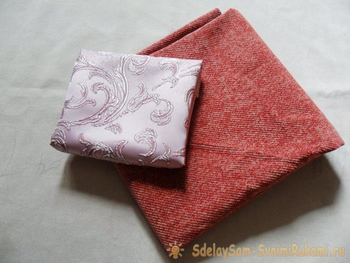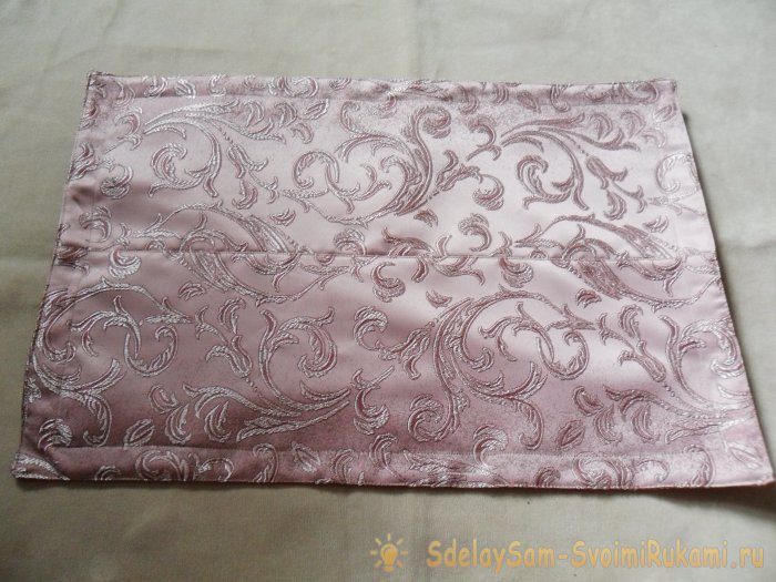 На днях решила обновить две небольшие декоративные подушечки, украшающие кровать. Наволочки из гобелена, в которые раньше были упакованы мои думки, поблекли и немного поднадоели. Порылась в закромах и нашла симпатичную ткань — портьерный атлас. Остался когда-то от пошива штор. Этого атласа у меня оказалось немного, поэтому заднюю часть наволочек я решила сшить из другой ткани — мебельной.