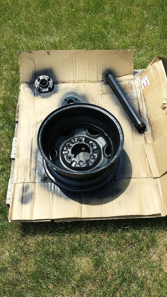 Далее идет покраска. Лично я использовал специальную высокотемпературную краску Rustoleum High Heat. Нанесение покрытия происходит по тому же принципу, что и с любой другой аэрозольной краской. Я покрасил все детали в два слоя. Я обмотал бумагой подшипники колес перед покраской, чтобы они не забились эмалью.