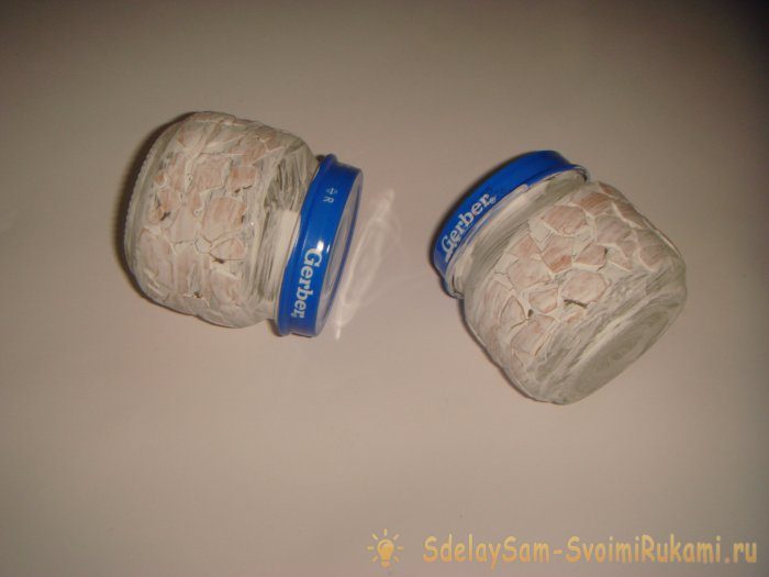 На следующем фото показаны баночки, полностью покрытые белым акриловым грунтом.
