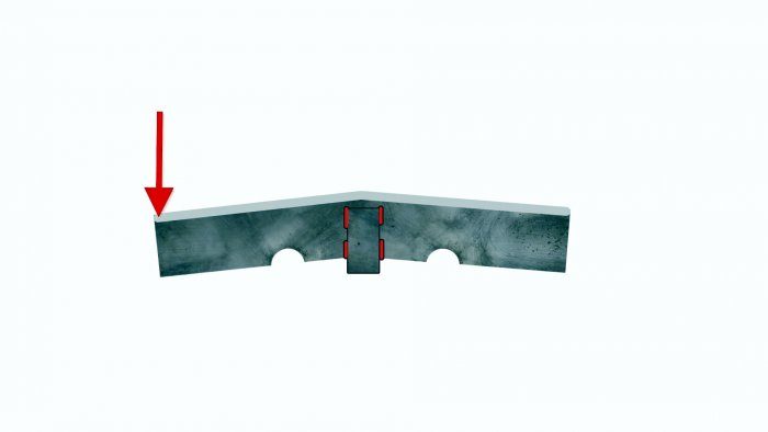 Рабочий нож культиватора делается V-образным. Для него нужно вырезать из циркулярного диска 2 пластины.