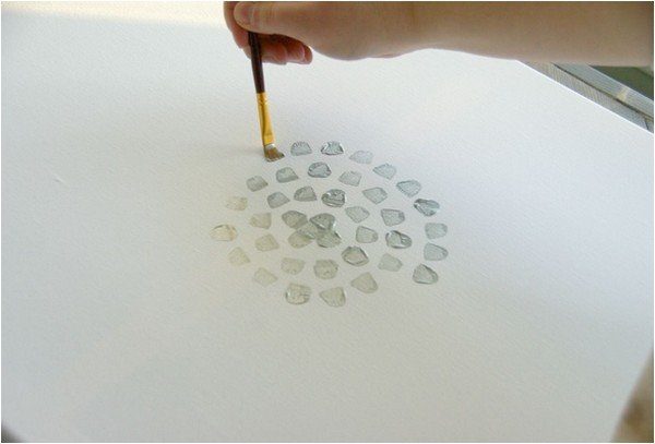 Чтобы точки были несколько разных оттенков, можно делать несколько точек, не обмакивая кисть каждый раз в краску. Круги и точки не должны быть идеальными.