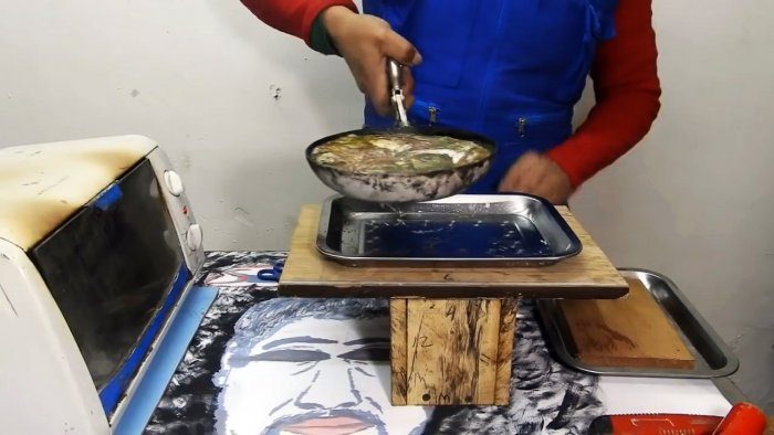 В это время подготавливаются 2 одинаковые металлические формы для литья. В их качестве могут использоваться подносы, тарелки, салатницы и т.д. Они должны быть сухими и чистыми. Важно, чтобы емкости имели развернутую форму и плотно входили друг в друга при складывании стопкой.