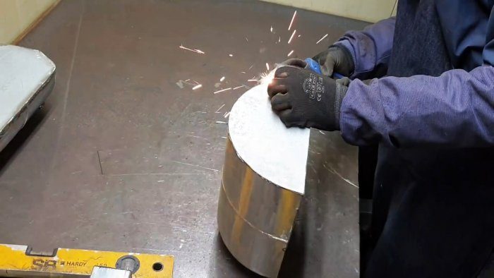 Из листовой стали вырезается плита по форме одной из половин баллона. Она будет использоваться в качестве варочной поверхности.