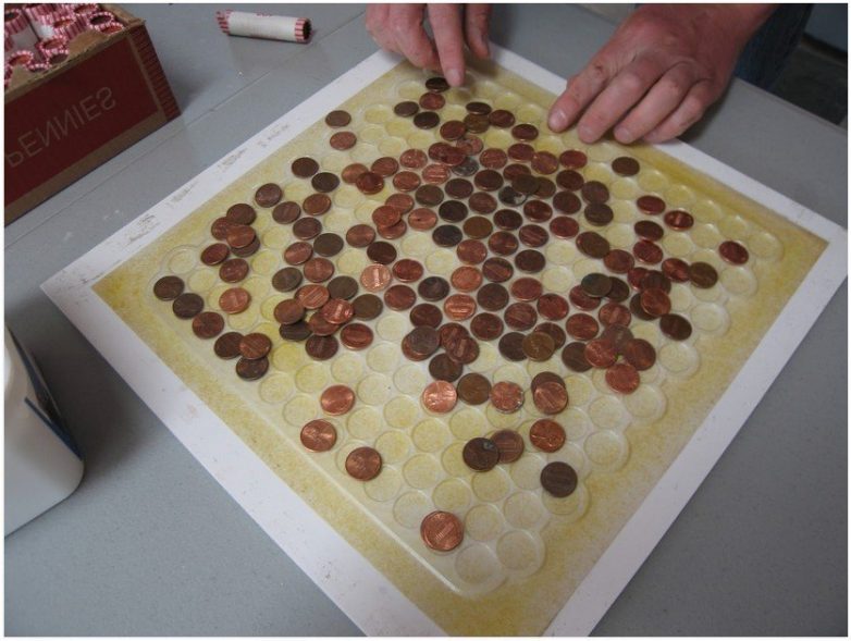 Эта часть довольна легкая, но также потребует много времени. Вам нужно будет разместить все монетки на квадратах стекловолокна.
