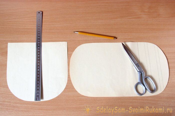 Бумажную выкройку стоит сделать лишь для клапана и дна рюкзака. Клапан кроим на основании квадрата 20 на 20 см, плавно округляя наружную его сторону. Дно кроим на основе прямоугольника размером 32 на 18,5 см, также округляя все углы. Длина окружности полученного овала днища равна 88 см.