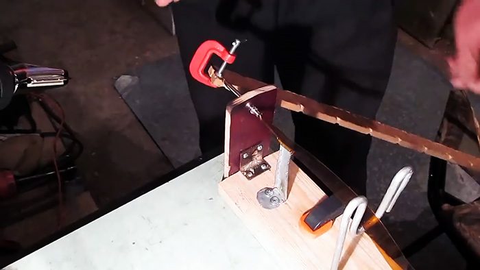 Затем кончик ленты нужно прижать к началу направляющей рейки маленькой струбциной.