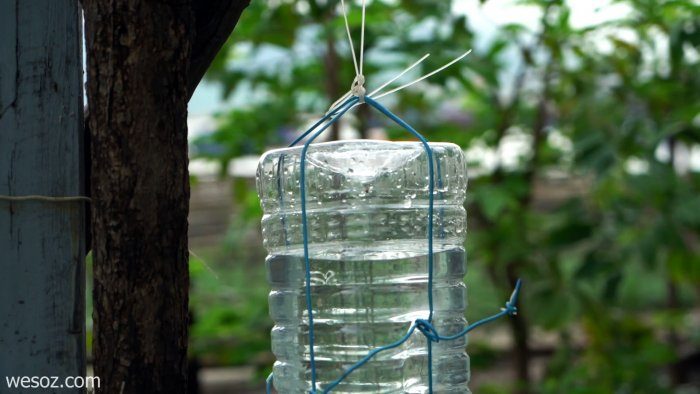 Теперь наливаем воду, подвешиваем бутылку и прикручиваем крышку с клапаном к ней.