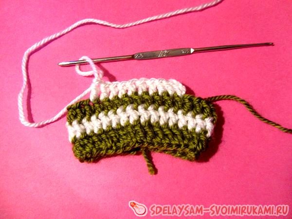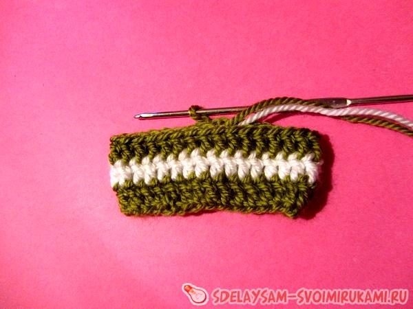 7. Провязав три ряда, обрываем нить и закрепляем ее.