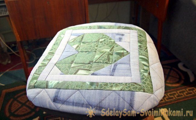 22. Полотно крепим на обратной стороне сиденья. Это можно сделать крепкими нитками. Можно воспользоваться строительным степлером.