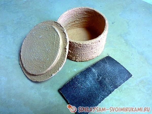 Если после ремонта у вас остались декоративная фактурная штукатурка, грунт с кварцевым наполнителем, пустые бобины из под скотча, не спешите их выкидывать, всё это может пригодиться для изготовления шкатулочки.