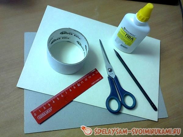 Вначале нужно сделать основу для шкатулки. Материалы, которые для этого понадобятся: бобина из под липкой ленты, плотный картон, простой карандаш, ножницы, клей ПВА.