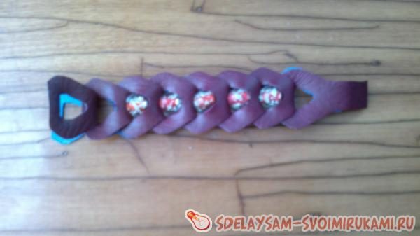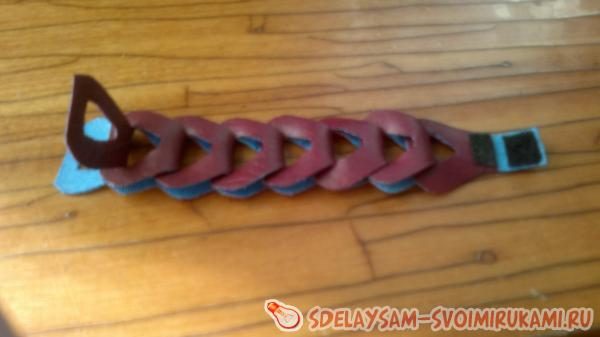 Края последней детали «в» склеиваем для удобства. Вот так браслет будет закрываться.(фото16) А вот его почти законченный вид.