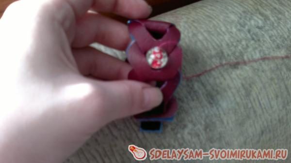 Теперь, в получившееся «окошечко» продеваем одну из деталей «в» и складываем ее пополам изнаночной стороной внутрь, чтобы получилось следующее «окно».