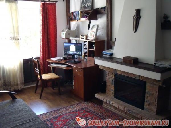 1. Перед началом работ необходимо подготовить эскиз и четко рассчитать размеры вашего камина. Следует помнить, что весь интерьер комнаты будет ориентирован на камин и должен ему соответствовать, чтобы он не смотрелся как нечто лишнее. Впрочем, это дело вкуса. В данном примере интерьер кабинета выполнен в стиле «немецкого загородного дома».