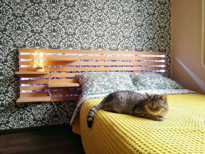 Здравствуйте! Расскажу, как я (автор сделал изголовье для своей кровати. Долго выбирал какое изголовье делать. А потом увидел реечное изголовье. Оно мне настолько понравилось, что я решил смастерить нечто похожее. Прикинул стоимость, вроде бы недорого. Ориентировочная стоимость 35 долларов.