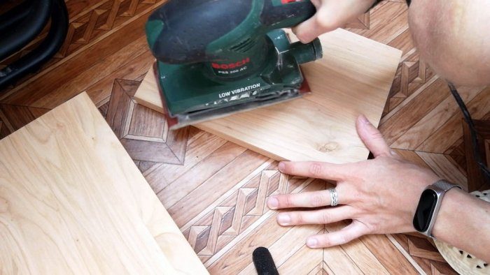 После завершения сборки тщательно обработал поверхность средне- и мелкозернистой наждачной бумагой.