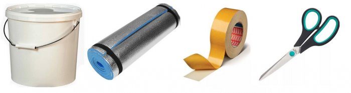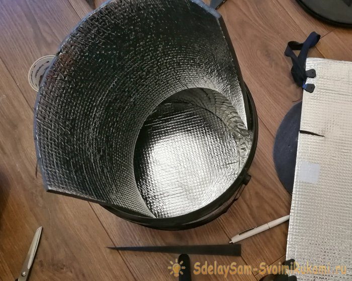 «Утеплять» ведро буду с помощью коврика туриста. Ели нету коврика, можно купить теплоизоляционные маты из вспененного полиэтилена со слоем алюминиевой фольги. Есть даже варианты с самоклеящимся слоем. Тогда не придется возиться с двусторонним скотчем.