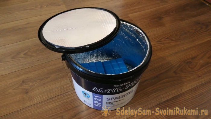 Сумка-холодильник – отличная вещь и может пригодиться в любое время года. Летом в нем продукты будут оставаться холодными, а зимой – теплыми. Сейчас я покажу, как из ведра от шпатлевки, можно сделать ведро-холодильник своими руками.