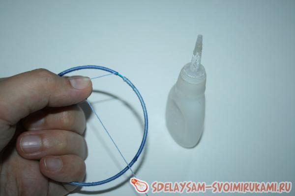 Начинаем наматывать нитку, пока клей не высок. Просто оберните несколько оборотов вокруг браслета, в месте, куда вы только что капнули клеем.