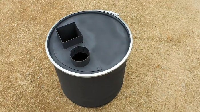 Основой для нашей универсальной печи послужит металлический бак с крышкой и обжимным обручем.