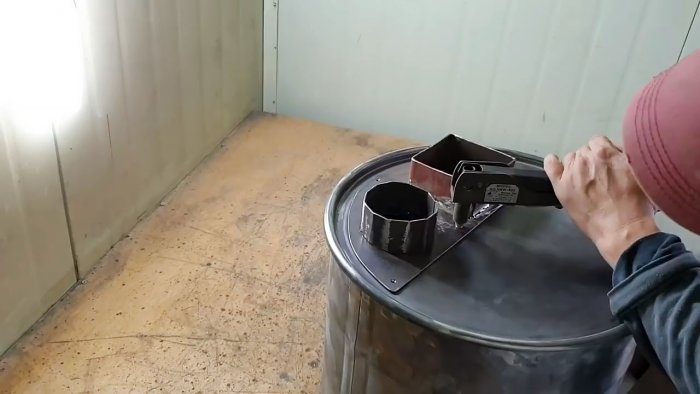 На боковой поверхности бака сверлим дрелью систему отверстий для поступления воздуха в топку.