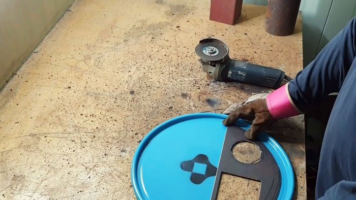 Используя сегмент как шаблон, размечаем вырезы на крышке бака, которые затем реализуем с помощью болгарки.