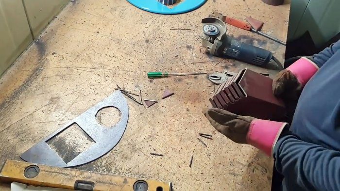 От профильной трубы болгаркой отрезаем кусок необходимой длины, а из листового материала – сегмент по размеру, близкий к полукругу крышки.