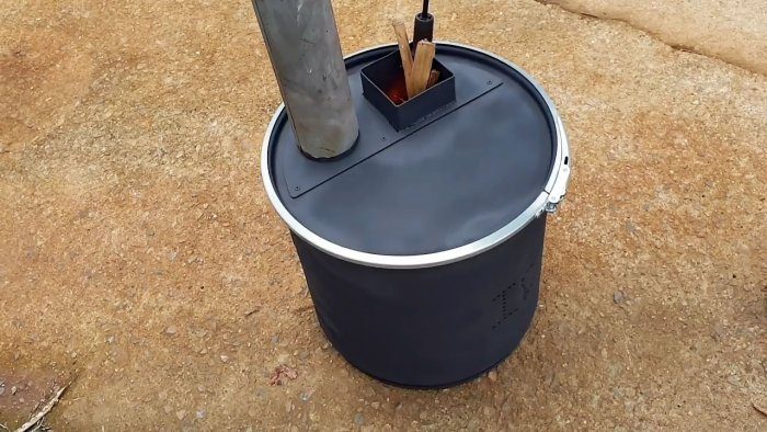 Печь с вертикальной загрузкой из металлического бака